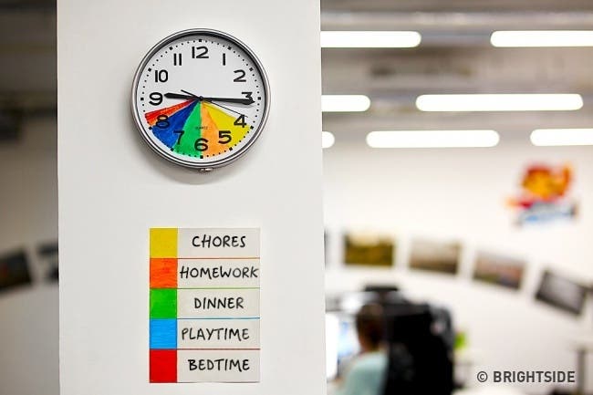 Asiste a tus hijos con sus rutinas creando este divertido y colorido reloj. Solo debes establecer un código de colores para diferenciar las actividades de tu hijo y pintarlo en el reloj que esté más a la vista en tu casa. De ahora en adelante el niño sabrá por su propia cuenta cuándo es hora de jugar o de ir al coro.