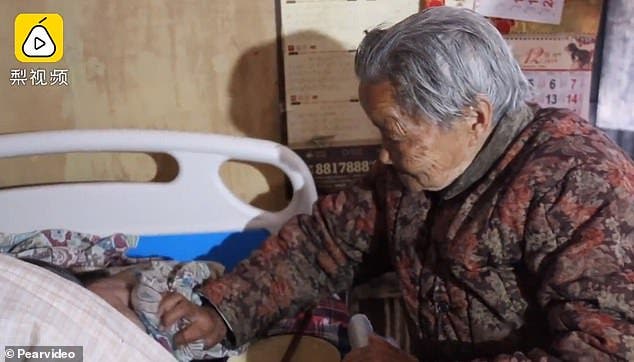 Una pobre mujer anciana china de 84 años de edad ha pasado 50 años cuidando de su hijo postrado en cama, sin pronunciar una sola queja.