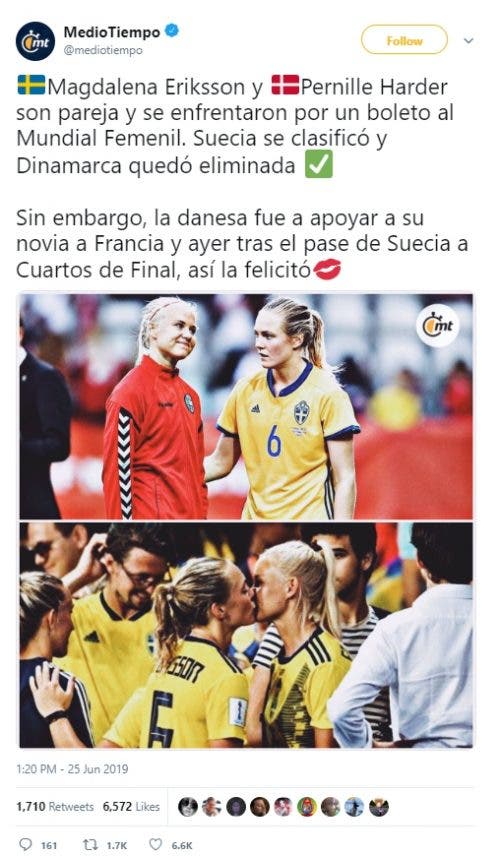 «Harder se quedó sin Mundial con Dinamarca y ha ido a animar a su novia Eriksson con la camiseta de Suecia», escribieron en Twitter.