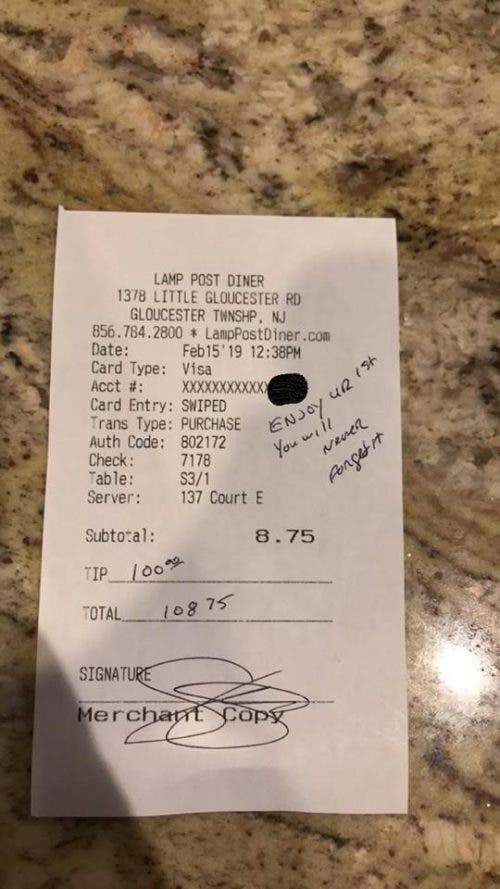 Lo particular de la anécdota es que Courtney reconoció que no era la primera vez que recibía generosas propinas. Pero sin duda, era la primera vez que un mensaje así había tocado tanto su corazón.