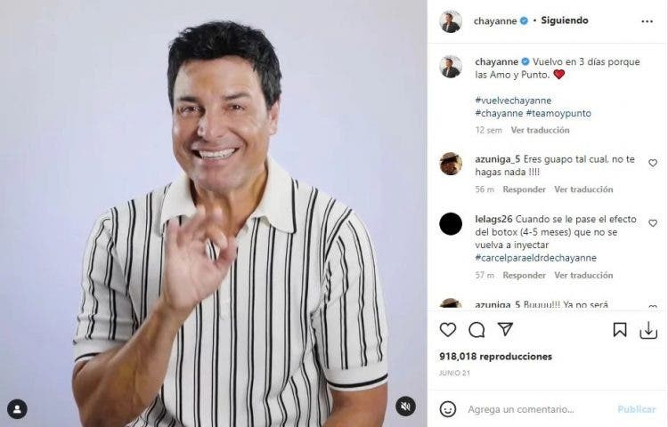 Chayanne publicó en su Instagram un vídeo promocional de su nuevo disco, pero la noticia quedó rezagada ante la apariencia del cantante. Sus fanáticos no pudieron obviar la cara inflamada y la piel “estirada de Chayanne”.