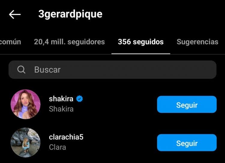 De sus 20 millones de seguidores, Piqué solo sigue a 356 personas en Instagram y una de ellas es @clarachia5, su novia