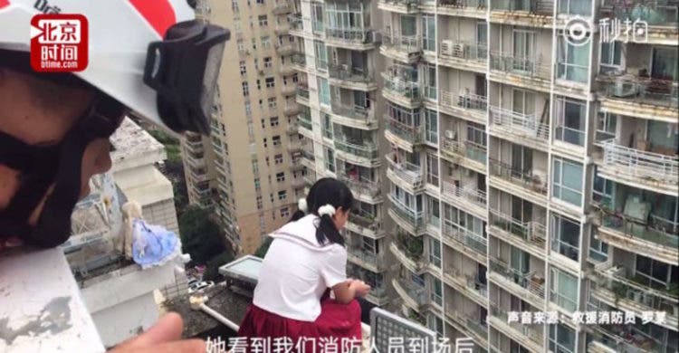 Una pequeña niña estudiante de los primeros años de secundaria se encontraba en el techo de un edificio de 17 pisos.