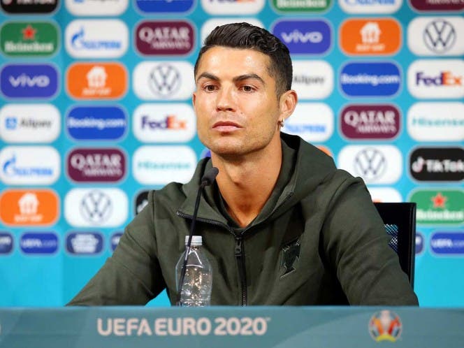 El jugador de fútbol portugués Cristiano Ronaldo protagonizó unas escenas que le dan la vuelta al mundo después de que retirara de su atril las botellas de Coca-Cola, patrocinante de la Eurocopa, durante una rueda de prensa.
