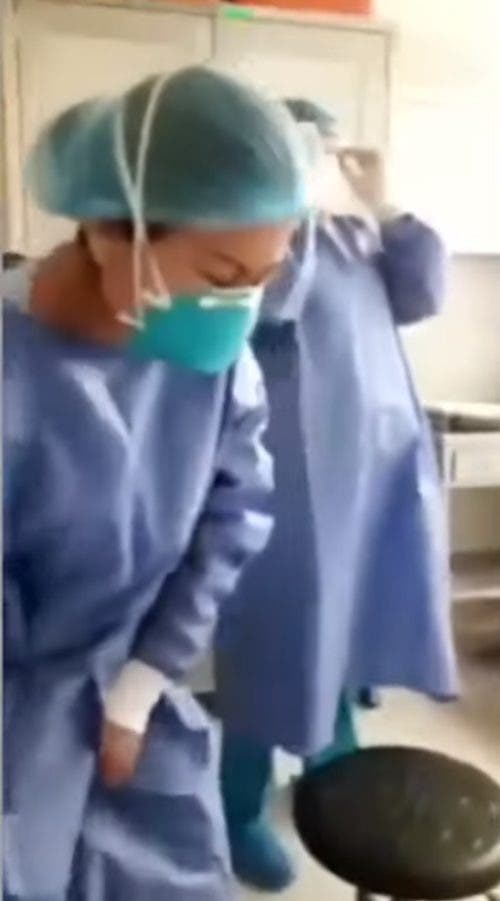 Un hecho curioso y que resalta a simple vista en la grabación es que la enfermera aparece sentada con su mascarilla debidamente colocada, pero tocaba su rostro tratando de ocultar la cara con las manos desnudas sin la protección de guantes.