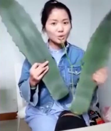 Conocida en internet como «Zhang», esta chica apareció en un video en vivo hablando sobre los beneficios del aloe de vera y, para probar su devoción por esta planta milagrosa, comenzó a comerse las dos grandes hojas que sostenía en las manos… El problema es que esta planta no era Aloe vera sino Agave americana.