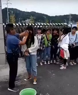 En el vídeo, que se grabó en la Secundaria 3 de Sansui, en China, se observa cómo el docente hace que las chicas hagan una fila, y una a una las va pasando para limpiarles el maquillaje de la cara, en realidad las chicas no se ven muy contentas con esto, pero todas esperan su turno.