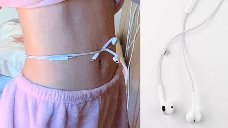 Para descubrir cuánto peso has ganado mientras holgazaneabas en casa, comprueba cuántas vueltas puedes llegar a dar con tus auriculares alrededor de la cintura. Etiqueta a tus amigas para hacer este reto juntas”.