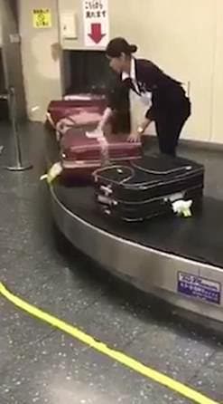Es el caso de esta trabajadora de un aeropuerto de Japón que fue filmada mientras recibía el equipaje de los pasajeros antes de que ellos lo retiraran.