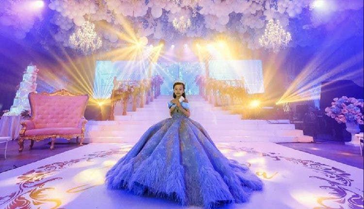 La dulce Isabella lució un vestido de princesa bordado con hilos de plata, acompañado con una corona de diamantes. Adicionalmente la ostentosa celebración estuvo llena de espectáculos para el deleite de los 300 invitados presentes.