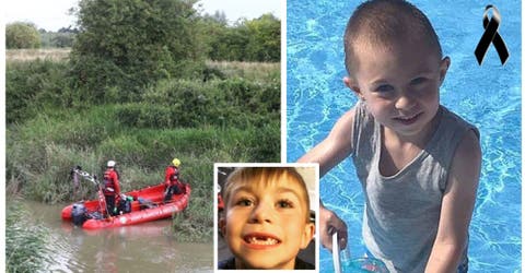 Lucas Dobson, de seis años, se cayó al río Stour en Sandwich, Kent mientras pescaba junto a su padre hace cuatro días fue arrastrado a pesar de los desesperados intentos para retenerlo.