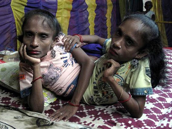 Ganga y Jamuna, nacieron en Calcuta, en la India en medio de una familia muy pobre, las gemelas comparten órganos vitales como su estómago, su hígado y riñones.