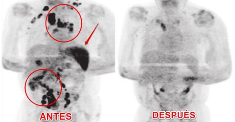 Según el reporte de los médicos, cuatro meses después, notaron que se había reducido la inflamación de los ganglios. Después de realizarle una exploración por tomografía PET, comprobaron que las lesiones causadas por el cáncer habían desaparecido casi en su totalidad.