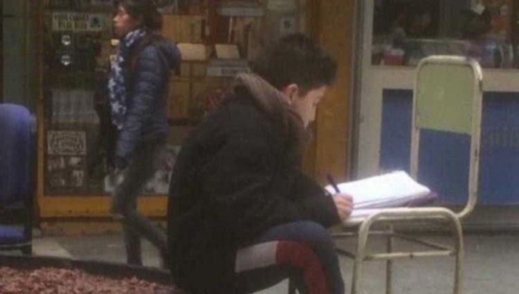 La temperatura de ese día descendió hasta los 4 grados centígrados, pero nada fue impedimento para que él se mantuviera estudiando muy concentrado mientras repetía en voz alta el nombre de las estaciones.