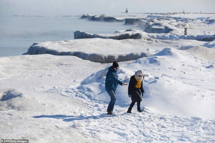 Tras la fuerte nevada, en la que un ser humano en el exterior podía llegar a congelarse en 10 minutos, una de las escenas más impactantes que circuló en las redes sociales fue la imagen del emblemático lago Michigan totalmente congelado.
