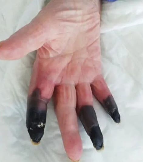 Tal como le ocurrió a una mujer de 86 años que contrajo coronavirus en Italia y perdió tres de sus dedos después de sufrir gangrena.
