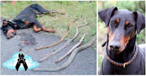 Esta estremecedora historia sucedió en Sebekapur, India. Un valiente perro doberman salvó la vida de su familia al sacrificar su vida y enfrentarse a cuatro peligrosas serpientes.