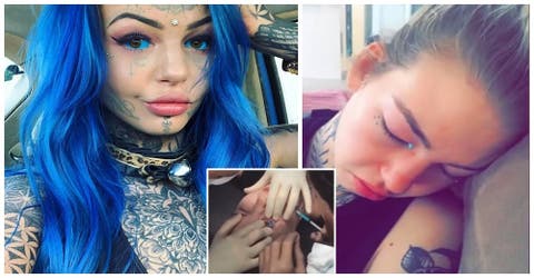 Amber se quedó sin poder ver durante 3 semanas después de que decidió tatuarse los globos oculares con tinta azul.