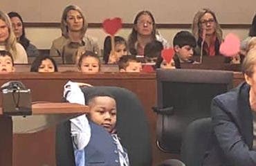 Michael Clark, de 5 años, acudió el pasado jueves 05 de diciembre al juzgado de Grand Rapids, en Michigan, para una audiencia de adopción con sus padres adoptivos, y asistió …