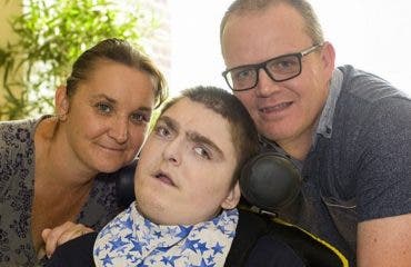 Aaron Faulkner, de 19 años, de Doncaster, Reino Unido, tiene un severo grado de discapacidad, no puede caminar, ni hablar y se alimenta a través de un tubo porque no …