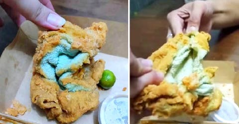 “Estaba intentando cortar un pedazo pero se me hizo demasiado difícil lograr sacar una pequeña rebanada. Lo abrí con mis manos y para mi gran sorpresa descubrí que se trataba de una toalla frita”, explicó Alique.