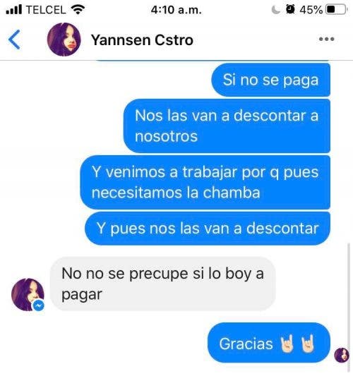 “No te pagaré nada y hazle como quieras, por haberme exhibido”, respondió Yannsen a los mensajes de la pizzería.