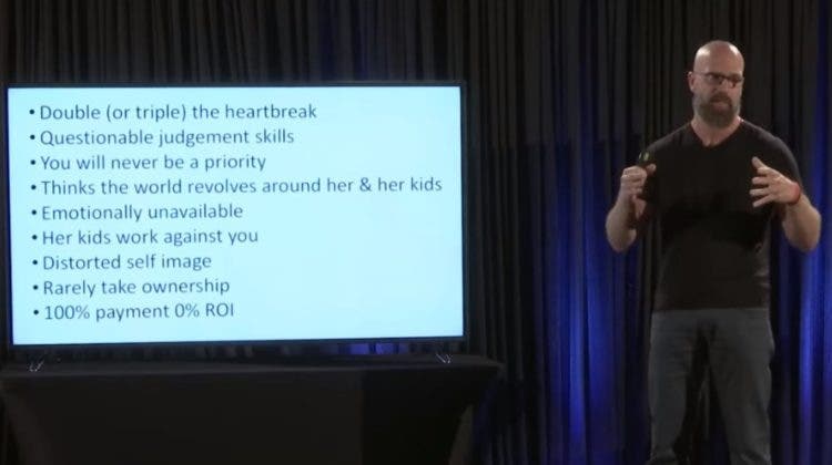 Realizó una charla dedicada a advertir a los hombres sobre los peligros de salir con una madre soltera. A pesar de que él mismo es un padre divorciado, muchos creerían que podría comprender y apoyar más a las mujeres que se encuentran en su situación, pero su charla dice todo lo contrario.