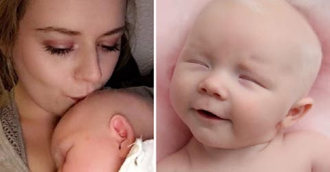 Semanas después de su nacimiento los médicos comenzaron a preocuparse por el color de sus ojos así que tras una serie de pruebas confirmaron que la pequeña bebé es albina. Se trata de un caso muy extraño ya que es una condición genética que suele ser heredada directamente de los padres.