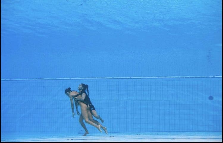 De inmediato, su entrenadora, la española Andrea Fuentes, pudo darse cuenta que se trataba de algo de vida o muerte. Y sin dudarlo, se lanzó al agua para intentar salvarle la vida.