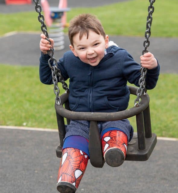 Este chico ha nacido en la era correcta, pues a pesar del daño recibido, ha podido recibir unas prótesis personalizadas para ayudarlo a caminar con su condición.