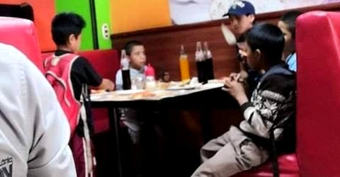 Es por ello que estos niños están dando de qué hablar. Puesto que no se han sumado a la indiferencia, sino que su reacción ante el niño vendedor de dulces que se les acerca, es invitarlo a sentarse con ellos en la misma mesa, como si fuese uno más de ellos.
