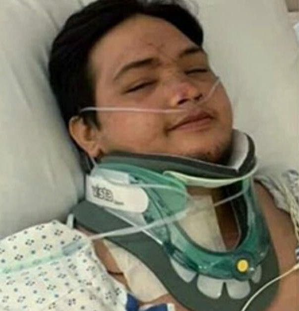 Somchai perdió siete vértebras en el cuello, pero por milagro aún tiene sensibilidad en las piernas, pero a pesar de esto su recuperación será lenta y ni siquiera es seguro que vuelva a caminar.