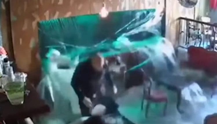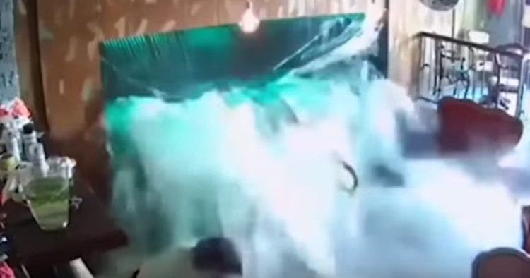 Un vídeo captura el momento en que una enorme pecera se rompe mojando a los clientes de un café